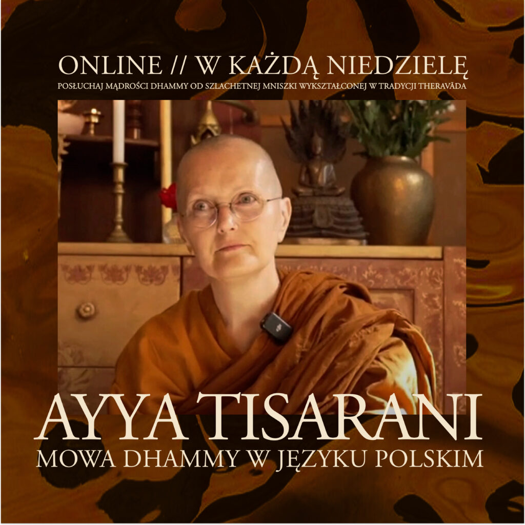 Serdecznie zapraszamy wszystkie osoby, które mają chęć pogłębiać swoją praktykę i pracować nad sobą w duchu Dhammy, na cotygodniowe spotkania z Ayyą Tisarani — pierwszą polską mniszką (bhikkhuṇī).